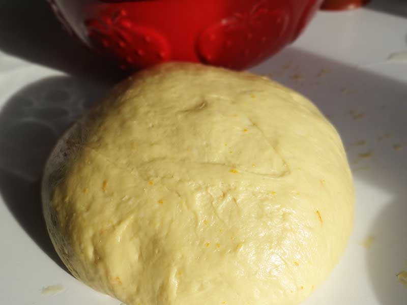 3. Când drojdia a început să crească o turnăm peste făină împreună cu restul ingredientelor pentru aluat. Frământăm aluatul fie cu mâna fie cu ajutorul unui robot. Eu am frământat inițial cu robotul după care am trecut la munca fizică, care este mai grea, m-au trecut toate apele, dar îmi place să simt aluatul cum se transformă în mâinile mele. Acest aluat este unul lipicios inițial iar la final trebuie să devină elastic și foarte puțin lipicios. Nu vă sfătuiesc să puneți făină în plus, vă ajutați la frământat de puțin ulei. Eu am uns degetele și planul de lucru cu puțin ulei și am frământat bine, pe urmă, o să observați, devine iar lipicios și iar mi-am pus puțin ulei. Ce înseamnă când un aluat este lipicios? Înseamnă că are un conținut ridicat de apă. Eu prefer un astfel de aluat deoarece rezultatul final este unul mult mai bun, vom obține niște mucenici pufoși și bine crescuți.