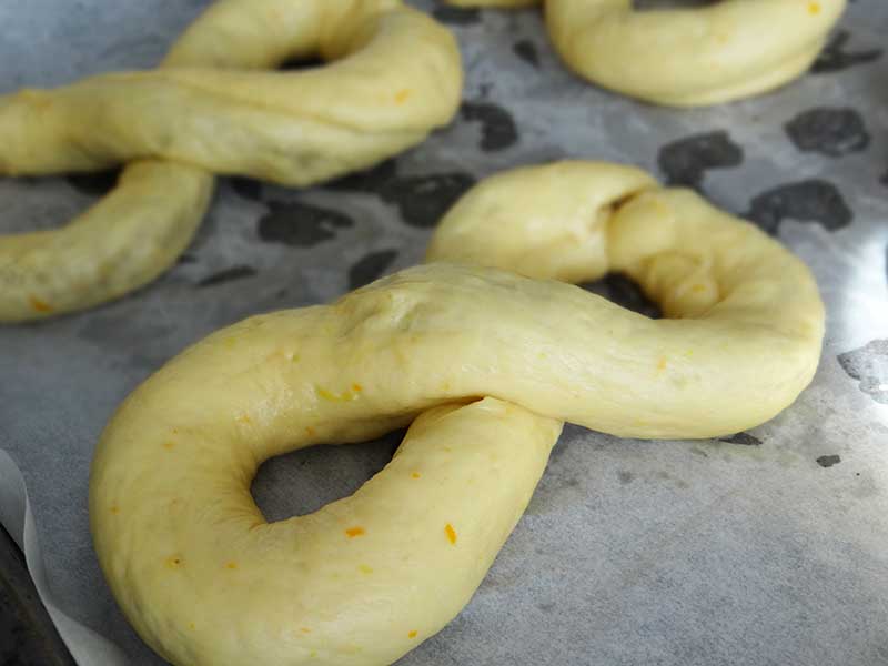 6. Punem mucenicii formați într-o tavă tapetată cu hârtie de copt, îi acoperim cu un șervet curat și îi lăsăm la dospit 30 de minute. Pornim și cuptorul la 180 grade C.