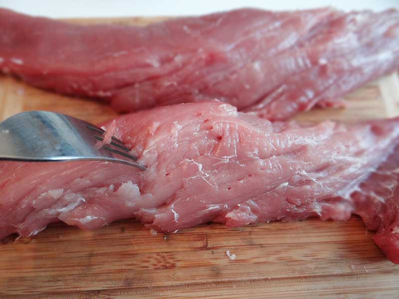 4. Înțepăm mușchiulețul, pe toată suprafața lui, cu o furculiță.