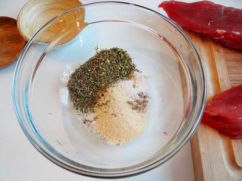 5. Masăm mușchiul cu ulei de măsline și apoi îl îmbrăcam cu condimente pe toate părțile.