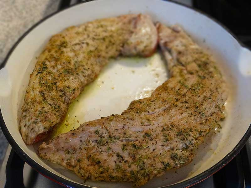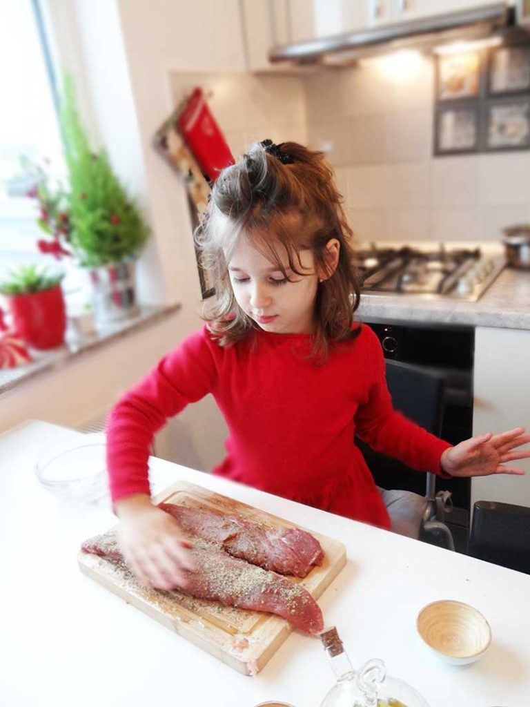 6. Încingem o lingură de ulei într-o tigaie care poate fi introdusă în cuptor. Prăjim mușchiul pe toate părțile(cam 6 minute) după care îl introducem în cuptor pentru 13-15 minute.