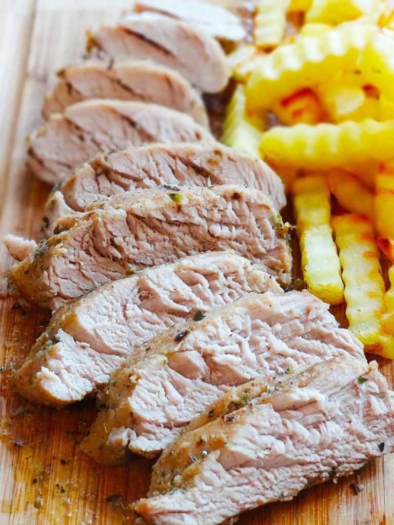 7. Transferăm mușchiul pe un tocător de lemn și îl lăsăm să se odihnească 5-10 minute. Apoi îl tăiem în felii.