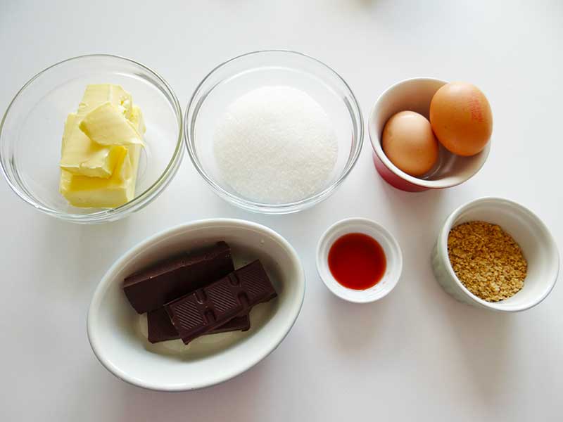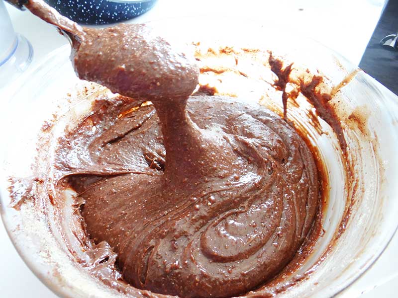 4.Pentru cremă mixăm cu un tel ouăle întregi împreună cu zahărul, pe baie de apă, până când se îngroașă. Adăugăm ciocolata mărunțită și untul tăiat în bucăți mici. Omogenizăm bine crema și o luăm de pe foc în momentul în care untul și ciocolata sunt topite. Adăugăm apoi romul și nuca măcinată.