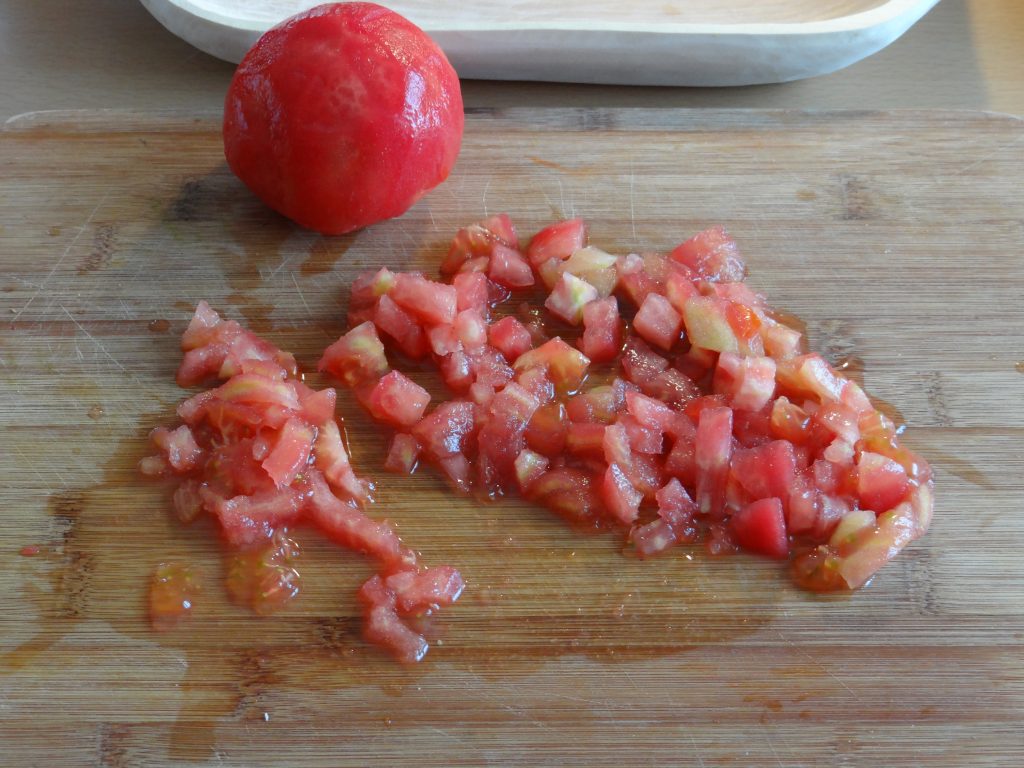 2. Decojim roșiile și le tăiem în bucăți mici.