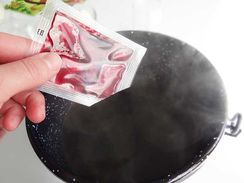 2. Într-un vas termorezistent punem 700ml apă fiartă, oțetul și plicul de colorant. Cu ajutorul unui polonic așezăm oăle cu grijă astfel încât să nu le spargem coaja.