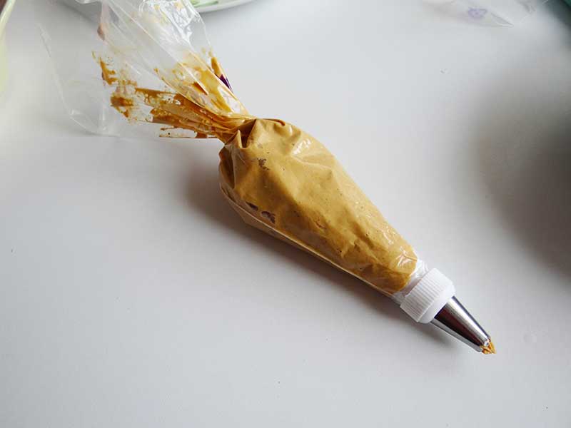 4. Punem tot amestecul într-un poș cu ajutorul căruia vom umple jumătățile de ouă.