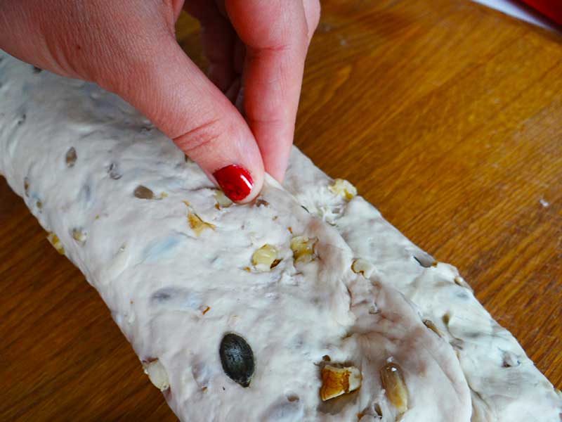 7. Capetele celor două extremități le rotunjim și le introducem sub pâine.