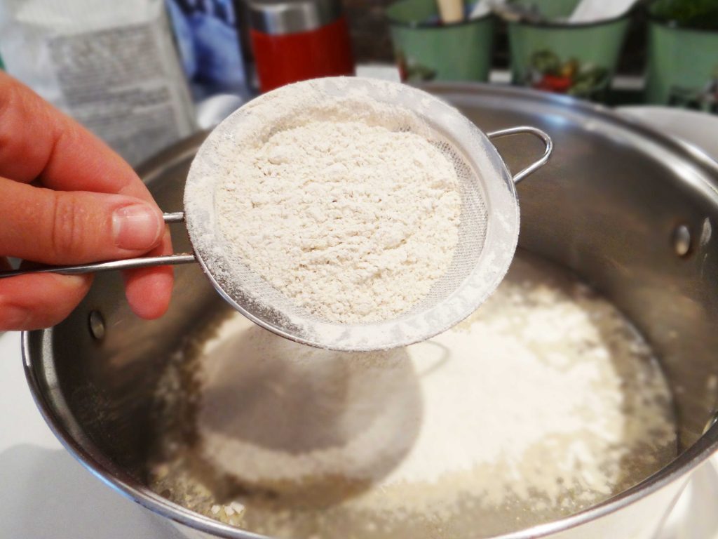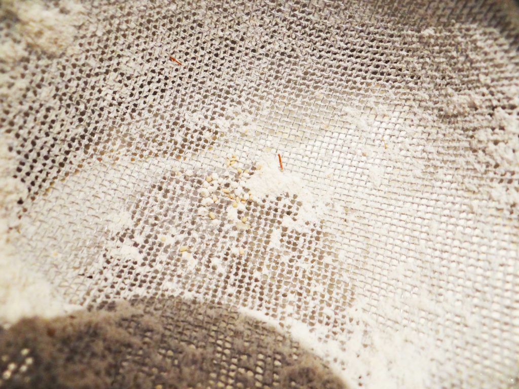 Veți observa ca vor rămâne niște bobițe mici în sită, să nu le aruncați deoarece este drojdia uscată. Facem acest pas doar pentru a aera făina.