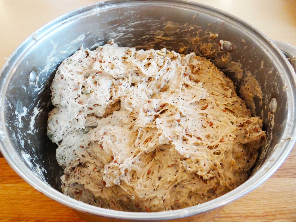 4. După o oră amestecăm iar totul, fie cu lingura fie cu mâna(în jur de 30 de secunde)
