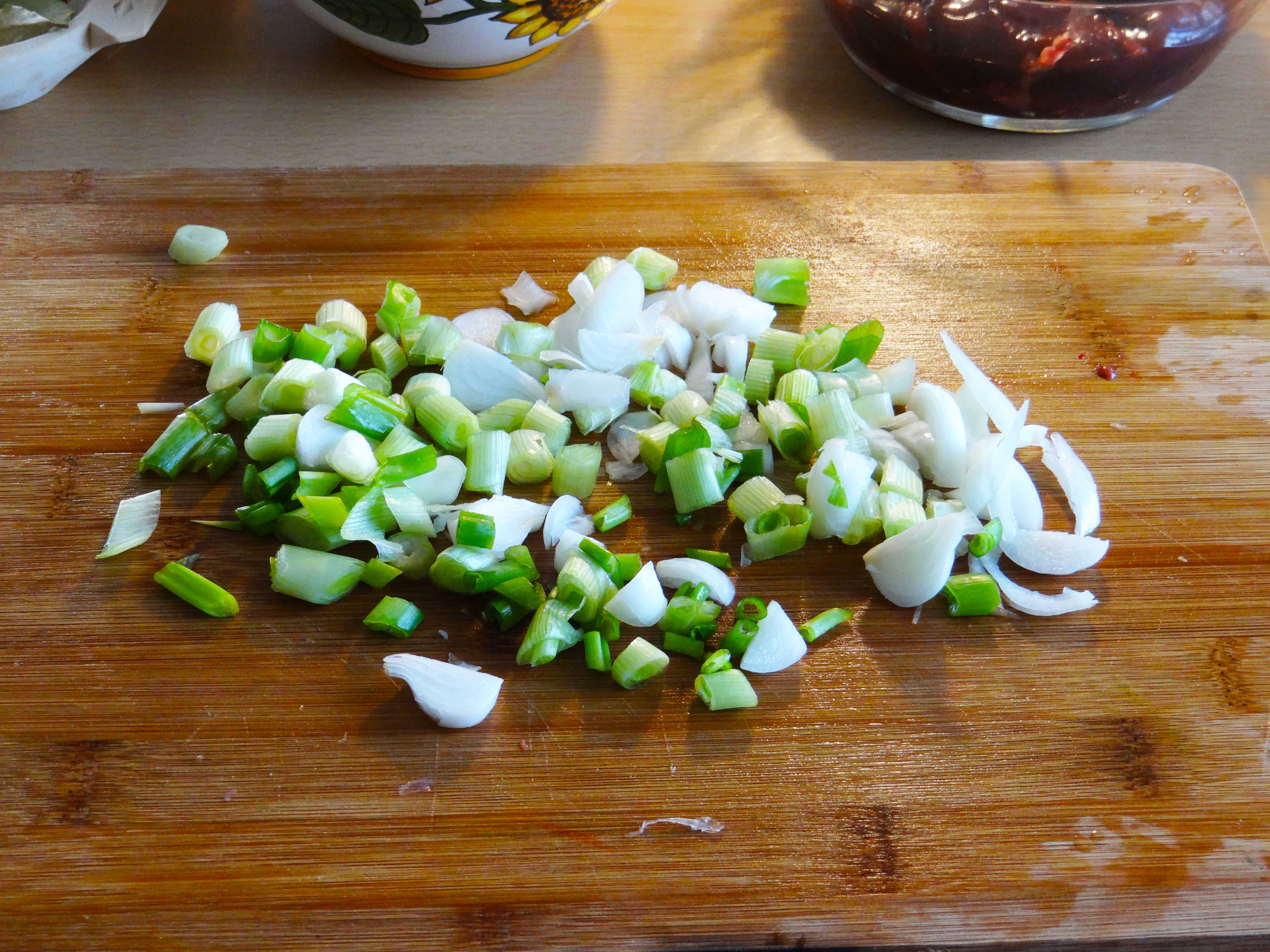 2. Curatam ceapa si usturoiul si le taiem rondele.
