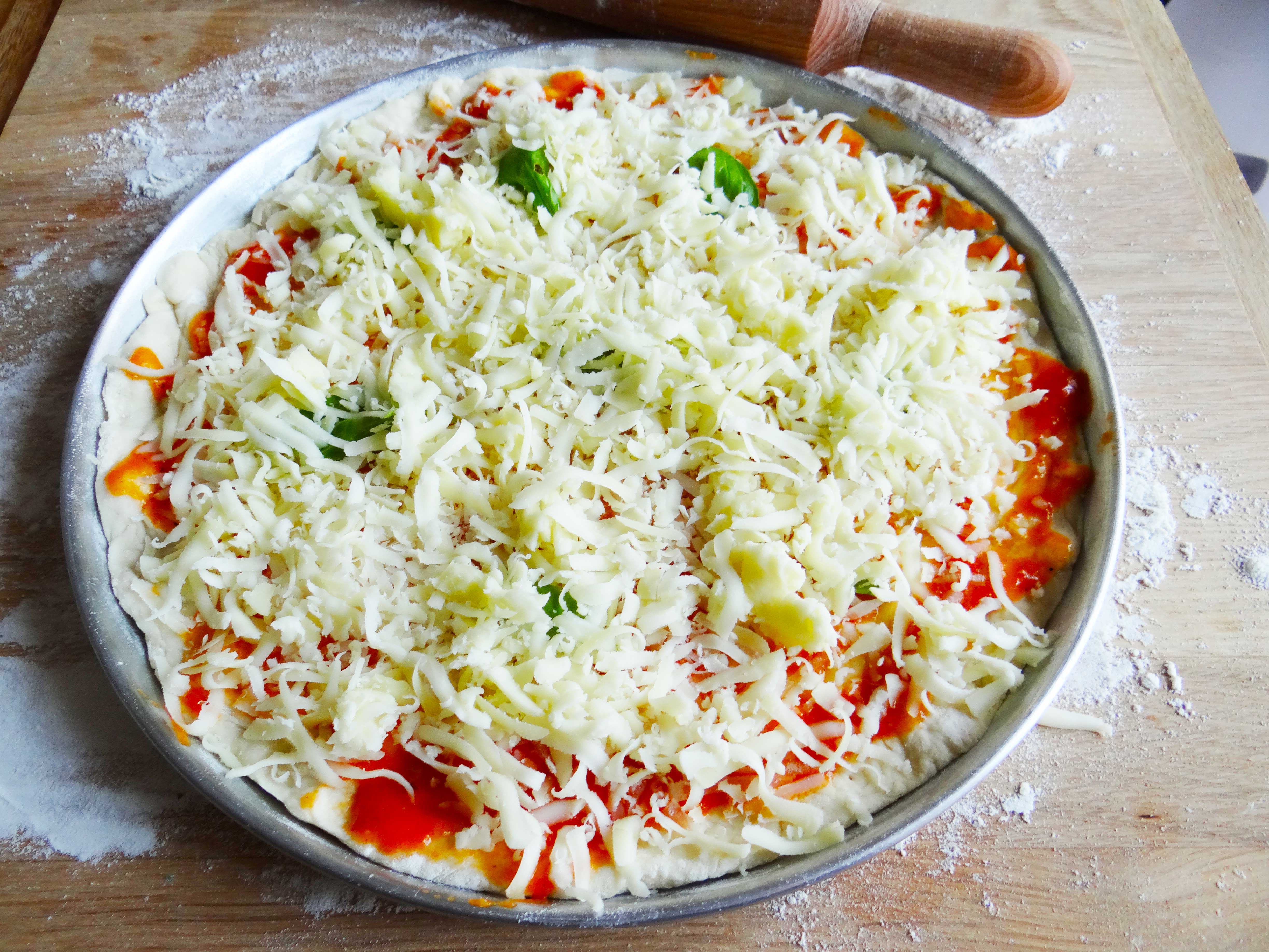 7. Si la final punem mozzarella din belsug.