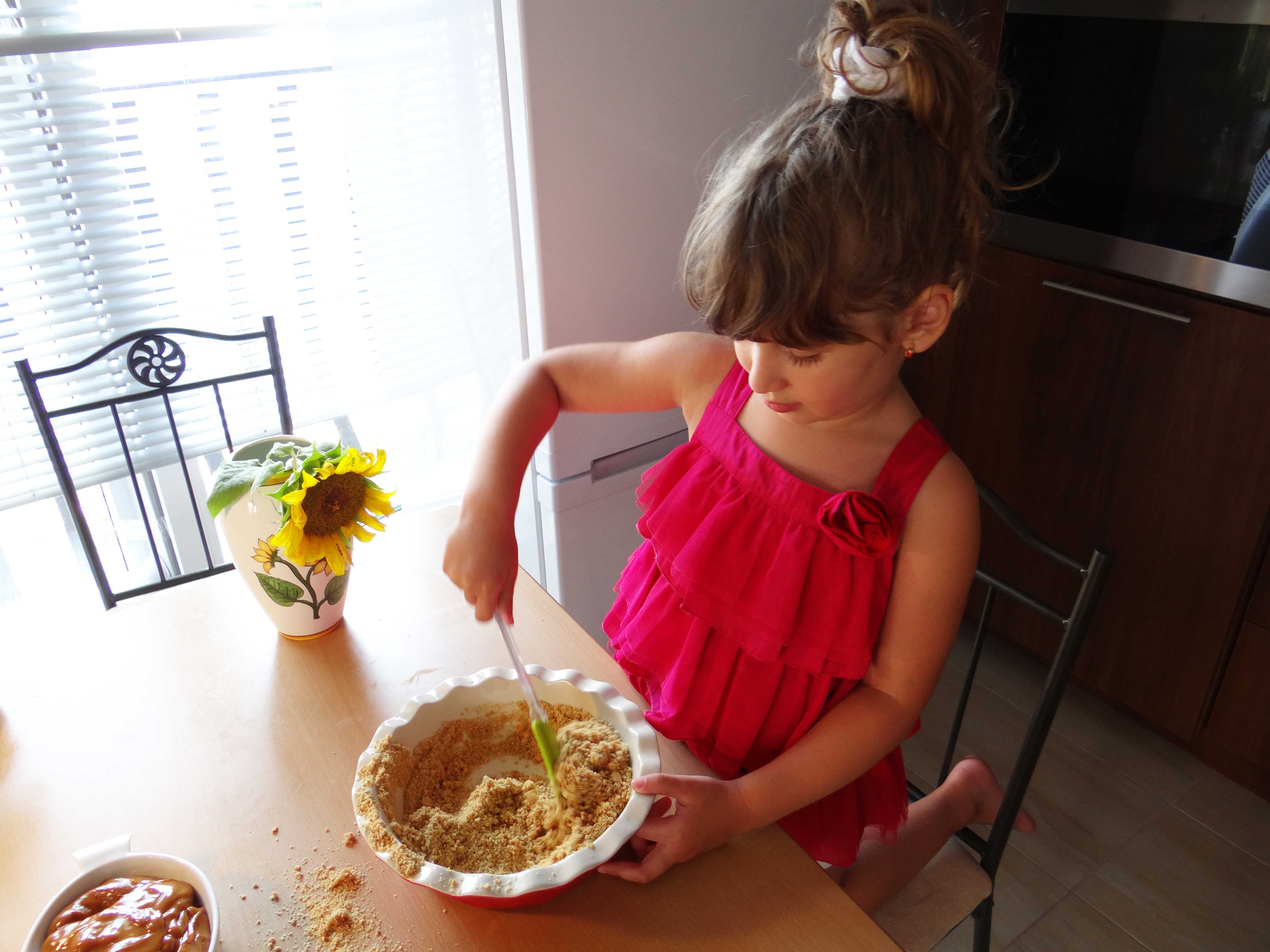 4. Cu amestecul rezultat tapetam fundul unei tavi joase.