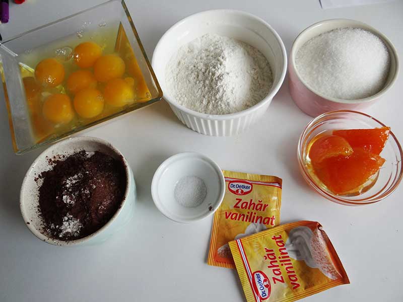 1. Prima dată pregătim blatul de cacao. Pornim cuptorul la 180 grade C. Mixăm ouăle, întregi, cu zahărul până când amestecul își triplează volumul. Separat, cernem făina împreună cu sarea și cacaoa.