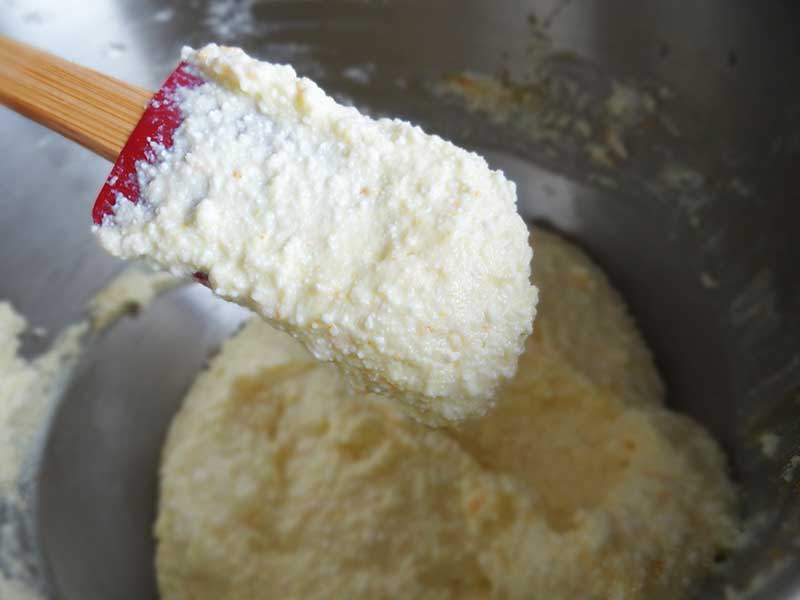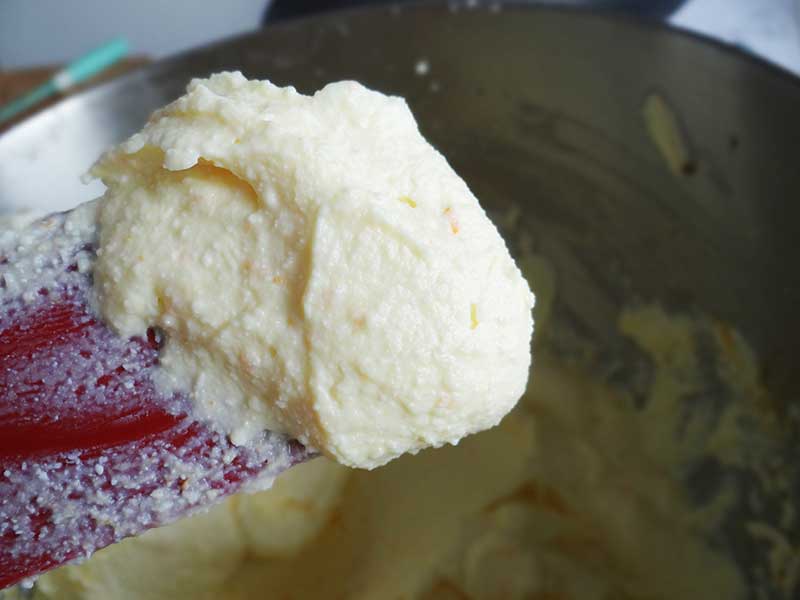 5. Pentru crema de brânză trebuie să mixăm zahărul cu untul până când obținem un amestec cremos. Adăugăm mascarpone, brânza, coaja de portocale. În cazul în care folosiți o brânză de vaci normală, așa cum am folosit eu, nu veți obține o cremă fină, ci dimpotrivă, v-a avea un aspect granular. Vă recomand să folosiți un blender vertical pentru a scăpea de acele granulații inestetice.