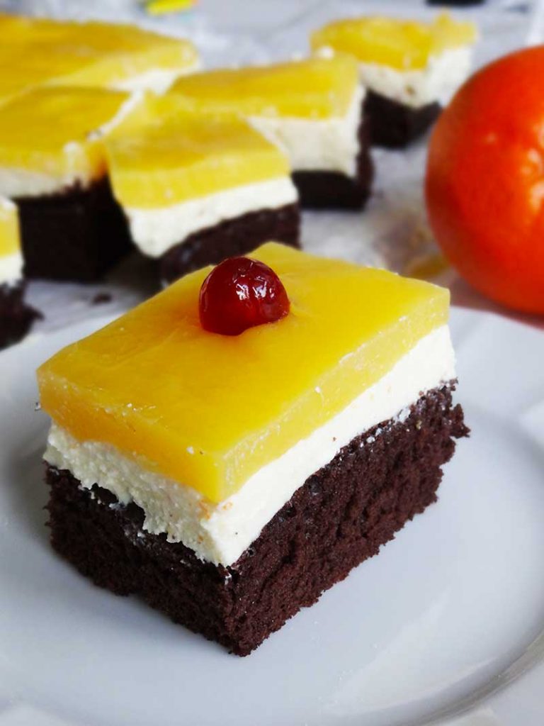Ținem prăjitura la frigider cel puțin 2 ore astfel încât crema și jeleul să se întărească.