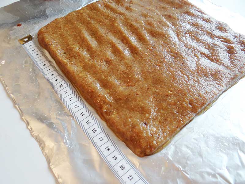 A doua metoda. Puneți pe masa de lucru o bucată de folie de aluminiu. Cu ajutorul degetelor formați, din compoziția deschisă la culoare, un strat cu dimensiunea de 20cm. Pentru a îndrepta marginile vă puteți folosi de o riglă sau o spatulă de lemn dreaptă.