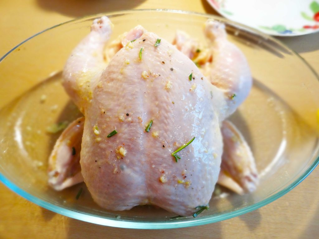 3. Ungem puiul pe toate parțile cu acest amestec, inclusiv în cavitatea internă.(eu l-am uns și pe sub piele)