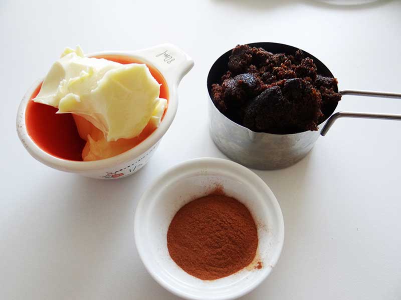3. Între timp pregătim umplutura. Combină zahărul cu scorțișoara și topim untul.