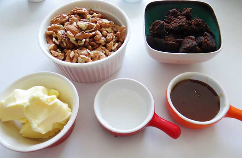 5. Urmează să pregătim toppingul. Pentru topping punem toate ingredientele necesare pentru acesta(exceție face nuca) pe foc și le fierbem la foc mic până când zahărul se topește complet.