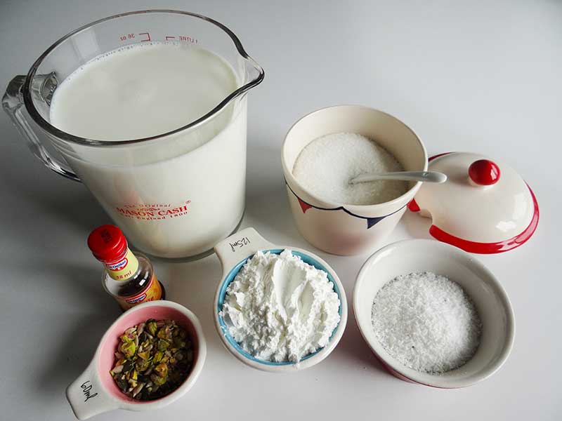 3. Turnăm budinca în pahare transparente, cât este fierbinte. Deasupra presărăm mai întâi fulgi de cocos, scorțișoară, cardamon și apoi fistic mărunțit sau nuci.