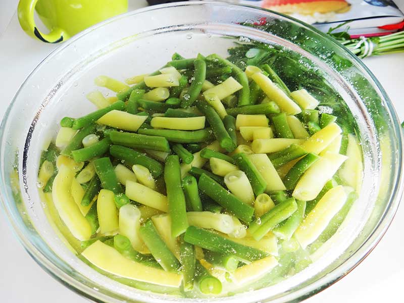 2. Curățăm și tăiem fasolea în bucăți de apoximativ 3cm.