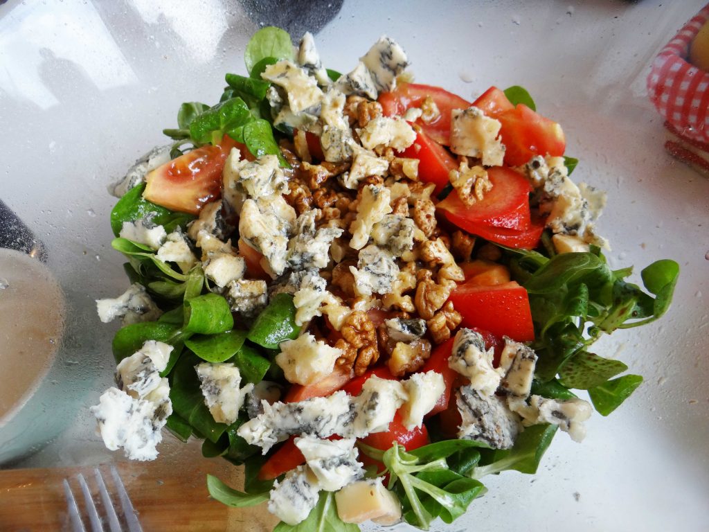 5. Așezăm valeriana spălată și bine scursă de apă într-un castron încăpător. Peste ea adăugăm restul ingredientelor.