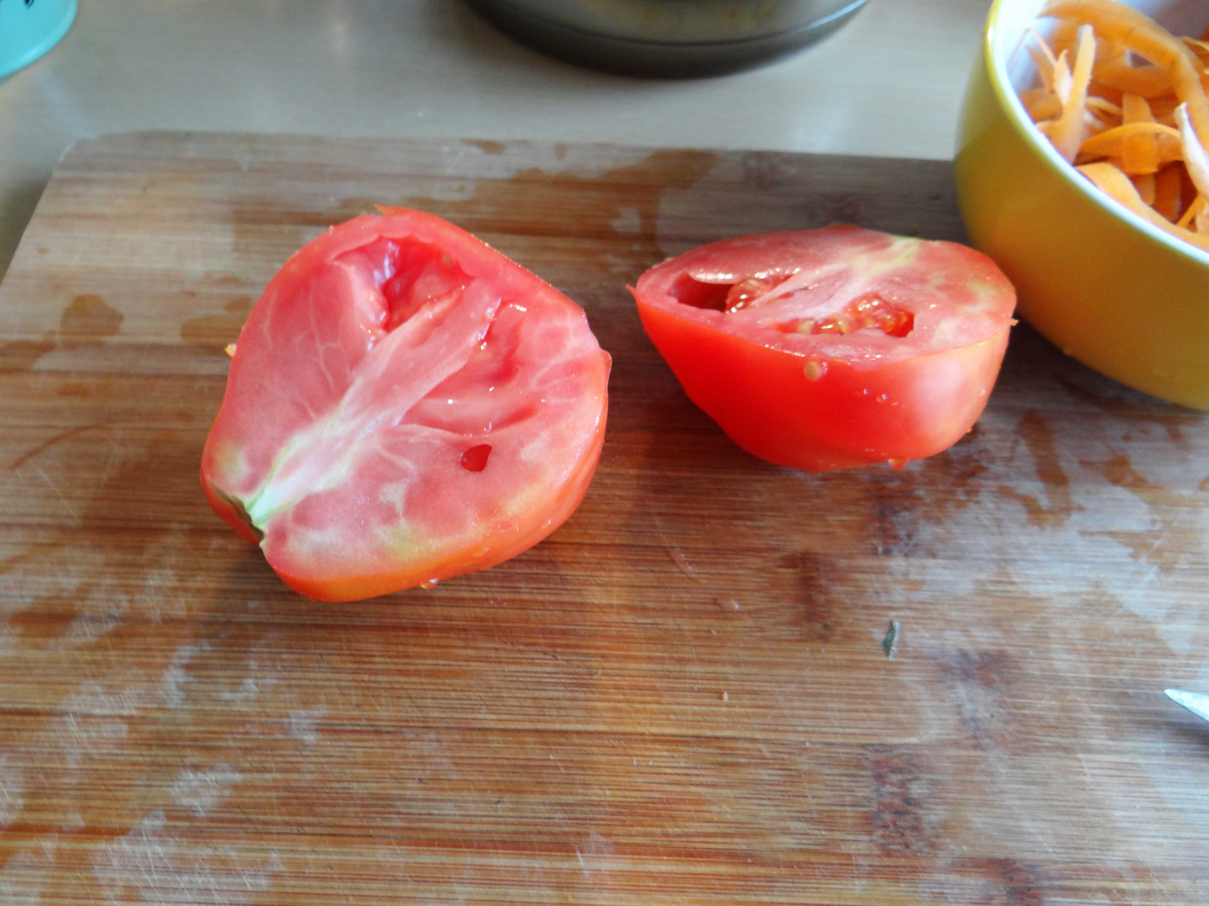 2. Taiem rosia pe jumate.