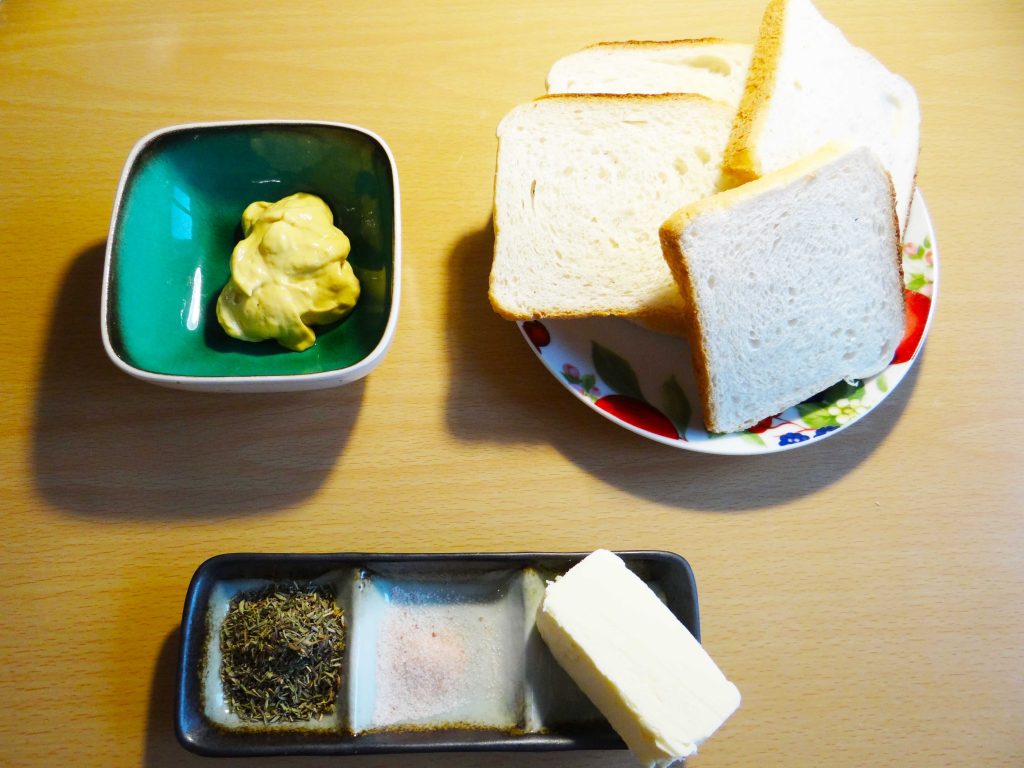 2. Topim untul într-o tigaie antiaderentă. În momentul în care untul începe să fumege adăugăm muștarul, sarea și cimbrul. Amestecăm totul bine după care oprim focul sși lasam amestecul să se răcească 2 minute.