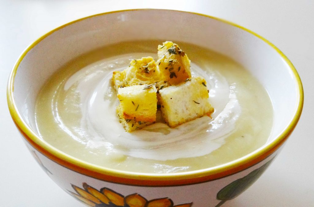 Servim supa cremă fierbinte împreună cu aceste crutoane deosebite.
