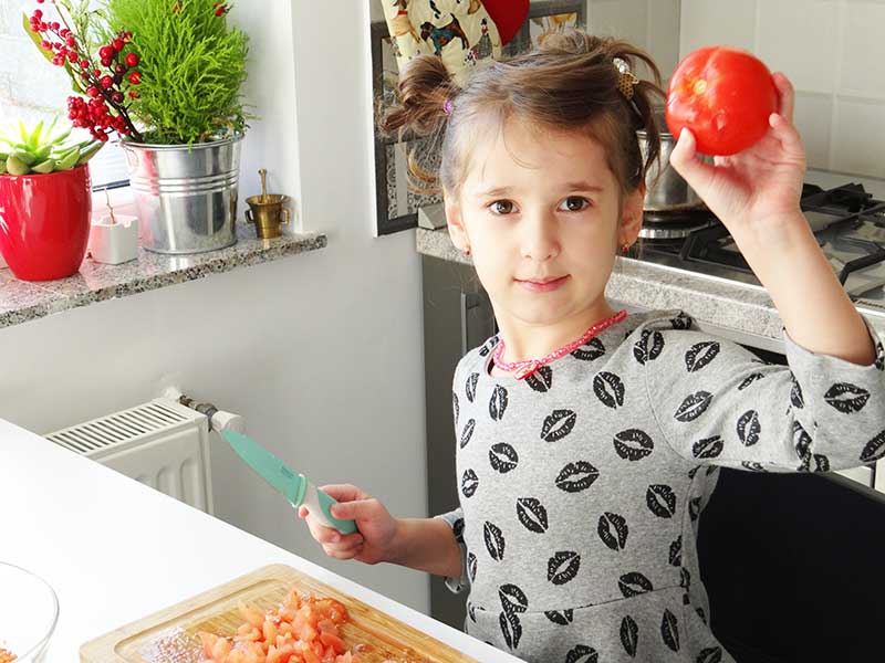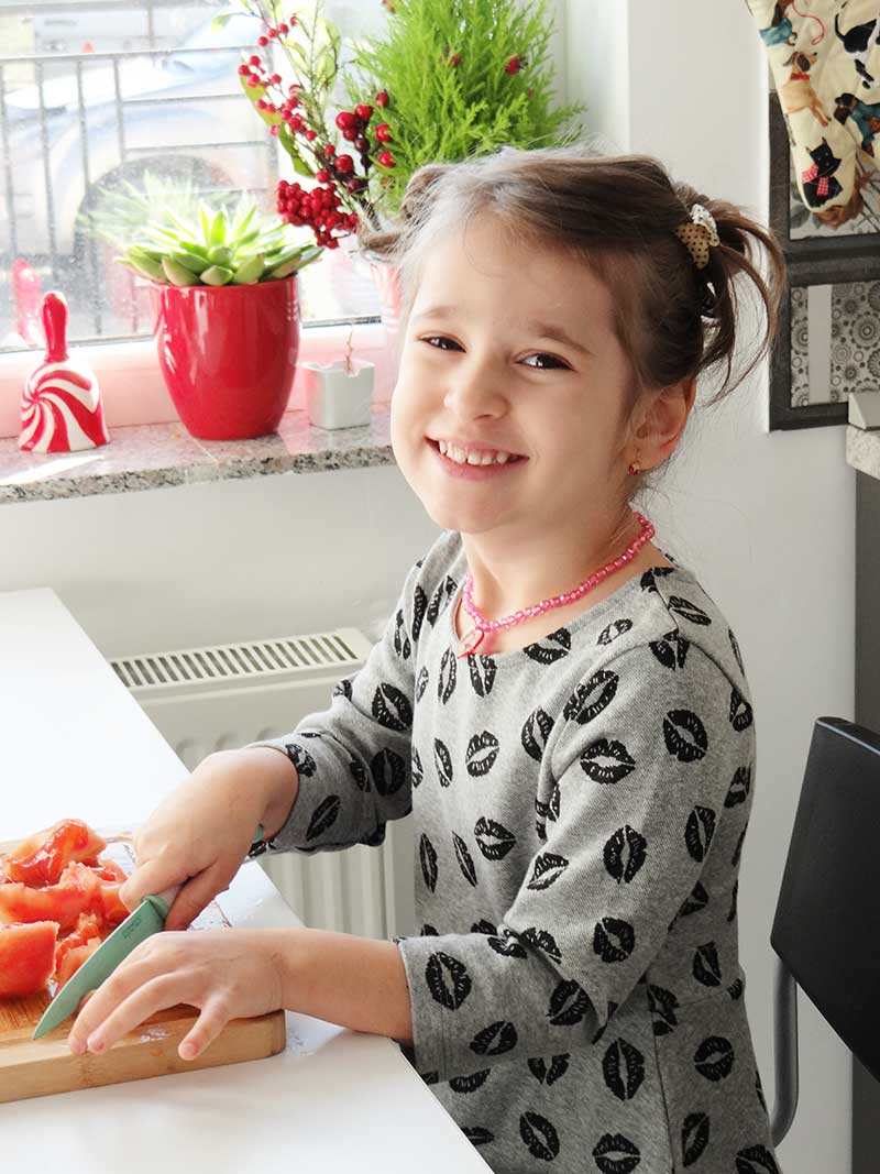 4. Curățăm roșiile de coajă și le tăiem cubulețe.