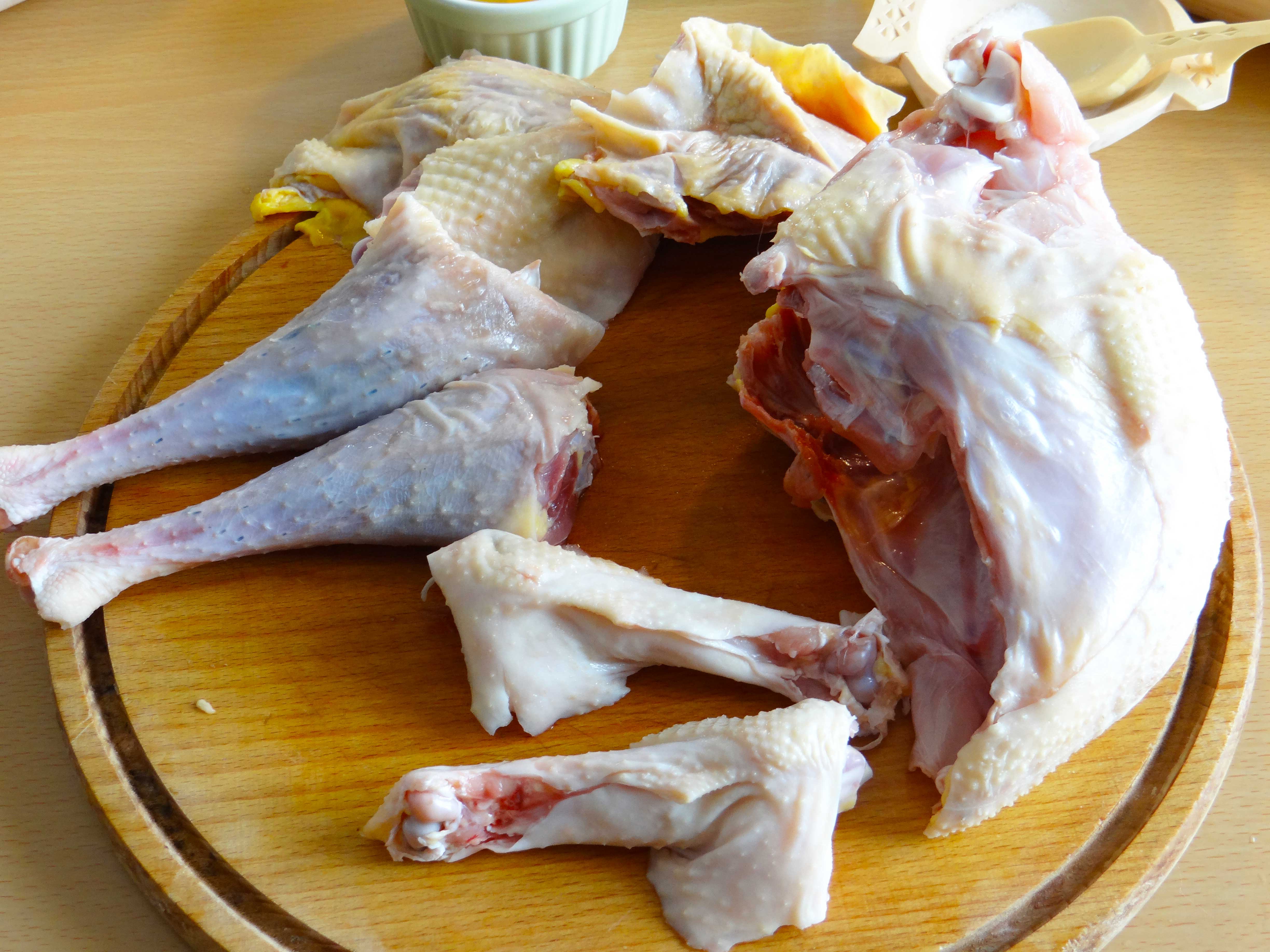 1. Transam gaina. Separam picioarele, aripile, pieptul si spatele.