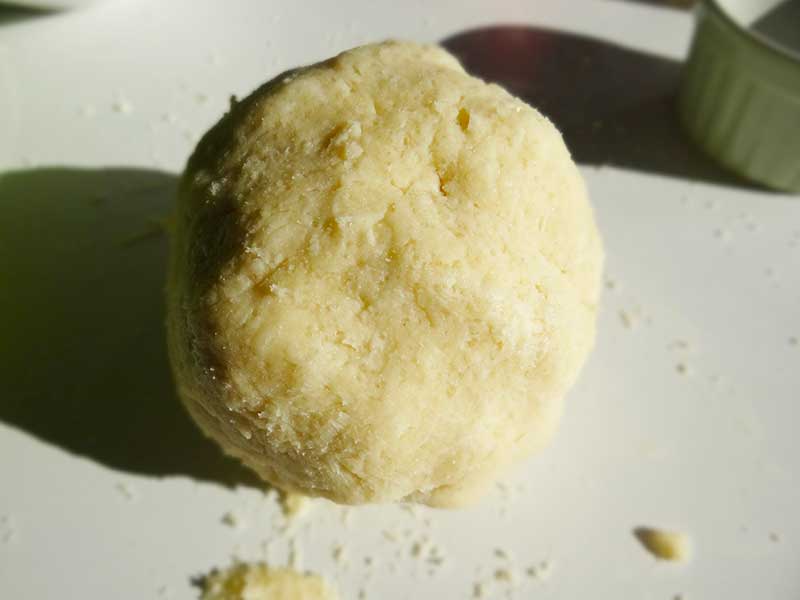 Strângem aluatul într-o bilă pe care o învelim în folie alimentară și apoi o introducem în frigider pentru 3 ore.