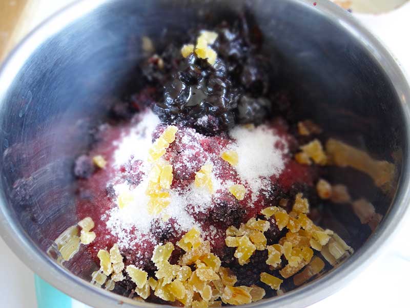 5. Într-o oală cu fund dublu adăugăm murele împreună cu zahărul, ghimbirul și dulceața. Punem amestecul pe foc pentru 15 minute. Amestecăm din când în când.