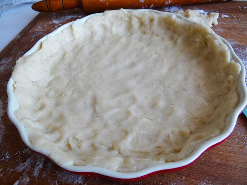 3. Întindem restul de aluat și apoi îl punem într-o formă de tartă cu diametrul de 16-17cm.