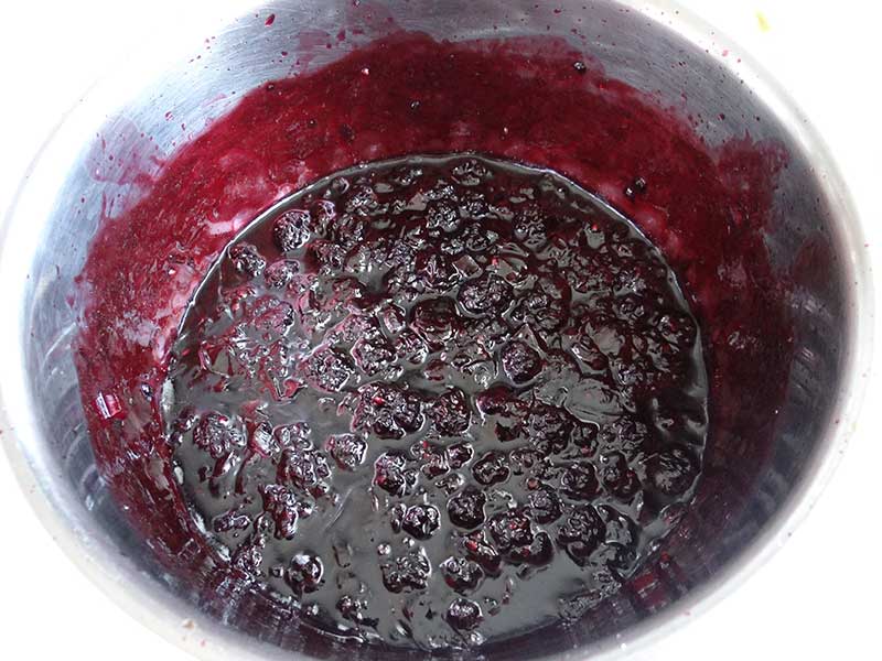 6. După 15 minute, punem 3 linguri de sirop fierbinte peste amidon, amestecăm bine și apoi turnăm amestecul în oală. Din acest moment mai ținem pe foc cam 4 minute sau până când umplutura se îngroașă. Lăsăm umplutura să se răcească complet.