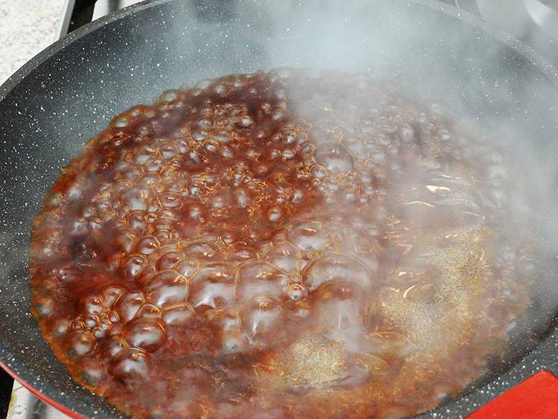 10. Pentru sirop trebuie să caramelizăm zahărul după care adăugăm apa. Mai ținem pe foc până când zahărul este dizolvat complet iar la final adăugăm romul. Lăsăm siropul la răcit.