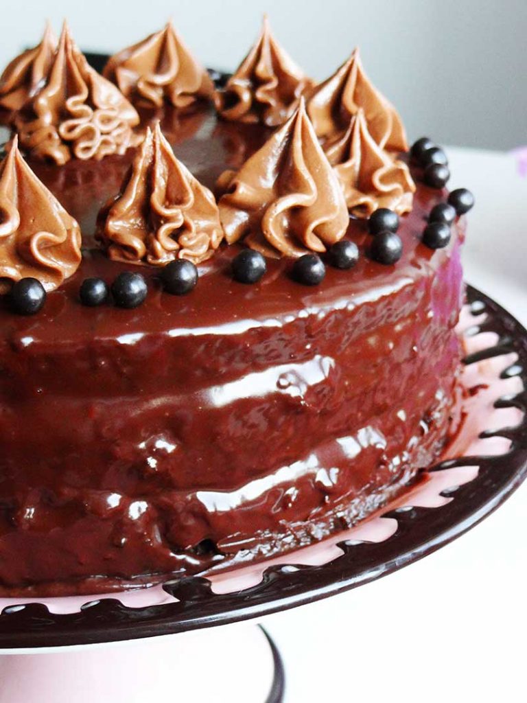 Turnăm glazura peste tort după care îl dăm iar la frigider până când glazura se întărește.